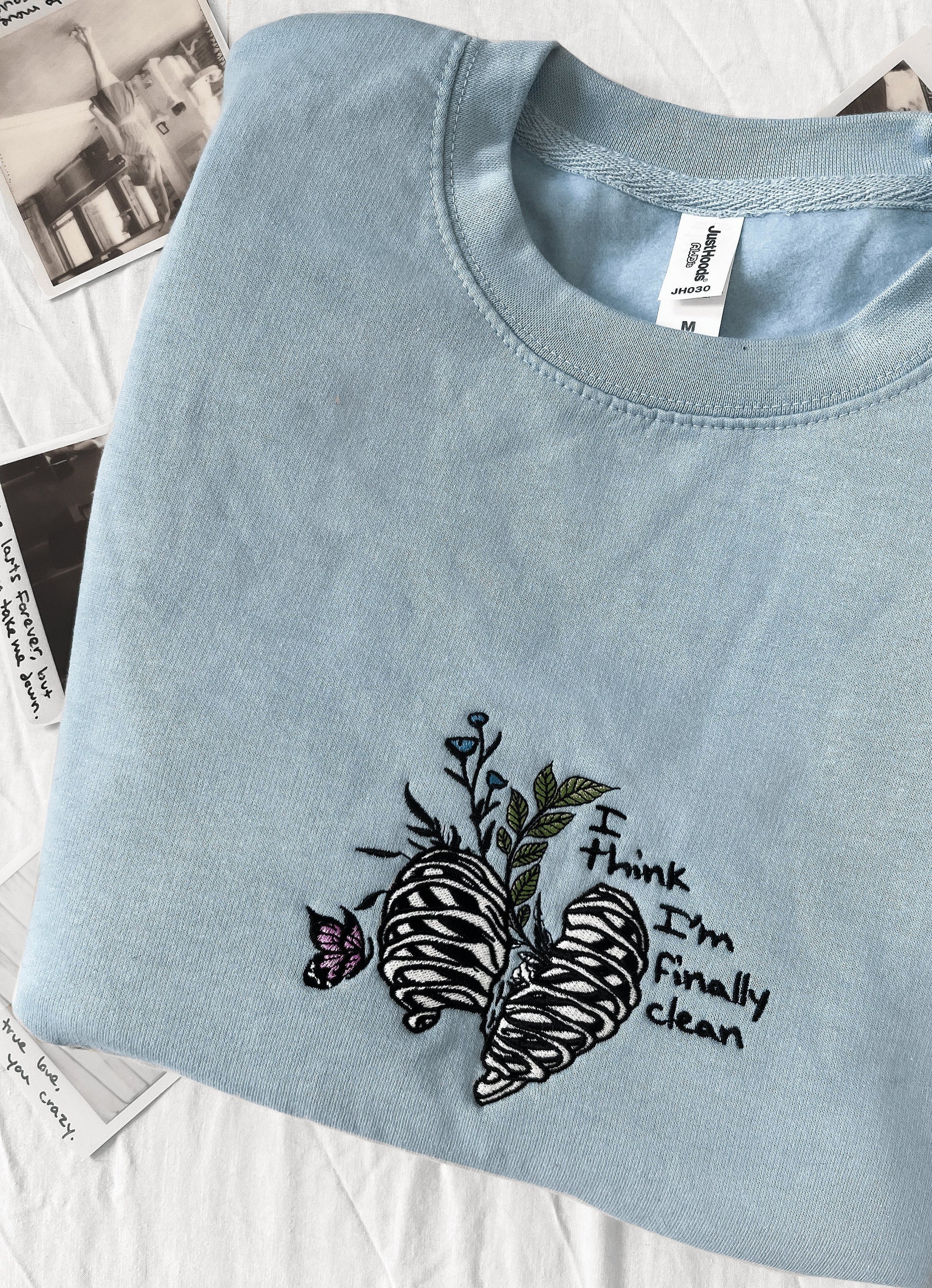 This sweatshirt is made of a durable and high-quality fabric and is designed to last. It features lyrics from Taylor Swift's 'Clean', as well as an original illustration. The sweatshirts are unisex fit - if you prefer a more oversized fit, size up!