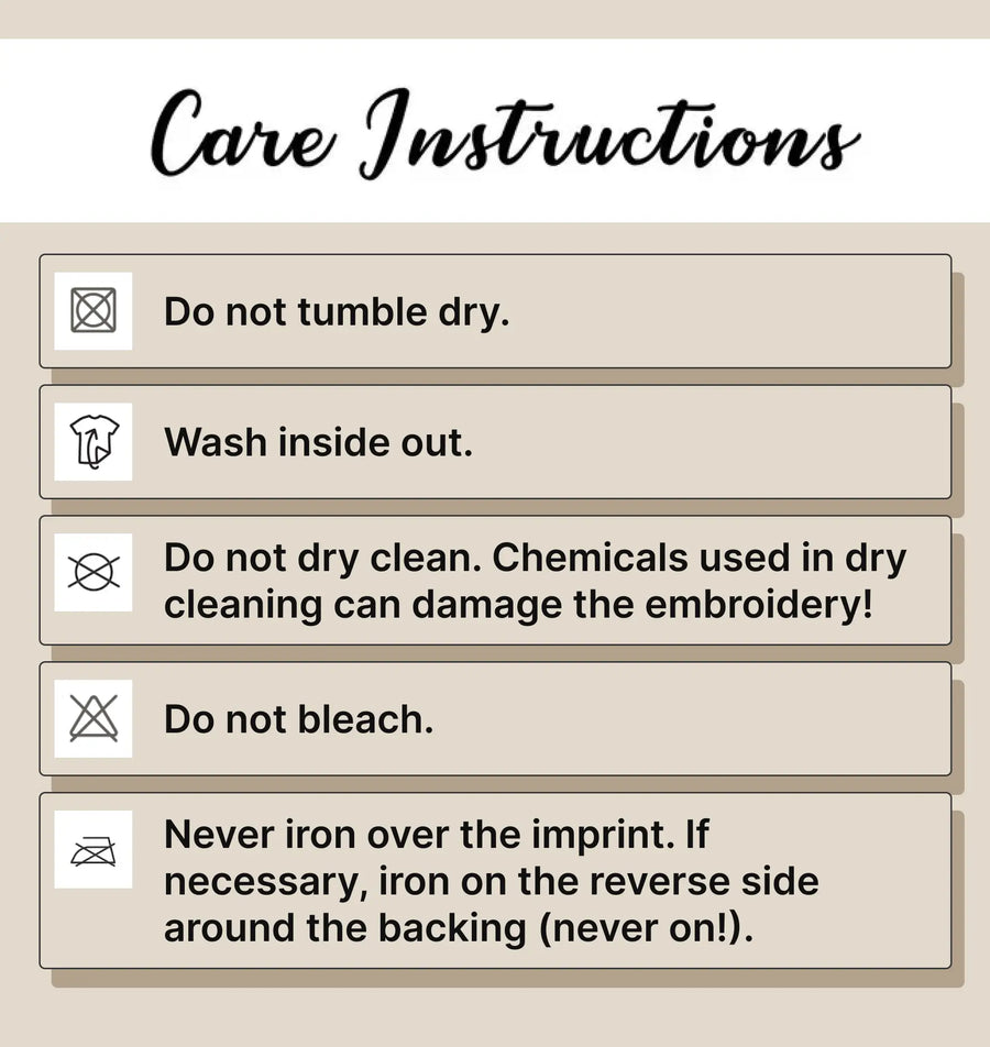 The design is embroidered straight through the material and the backing catches the thread on the other side to keep the design secure. Eventually, this will start to come away after many washes but this will not affect your item as it is stitched into the fabric of the garment.