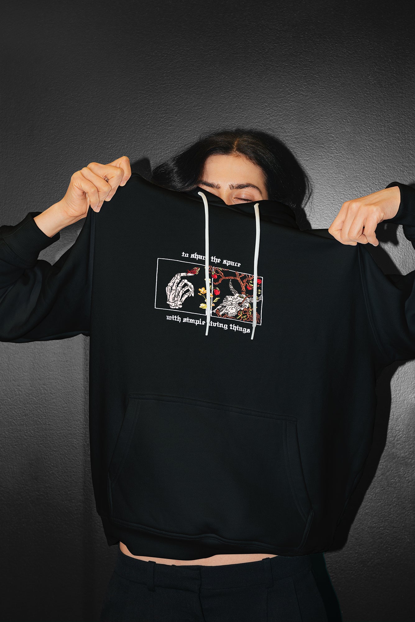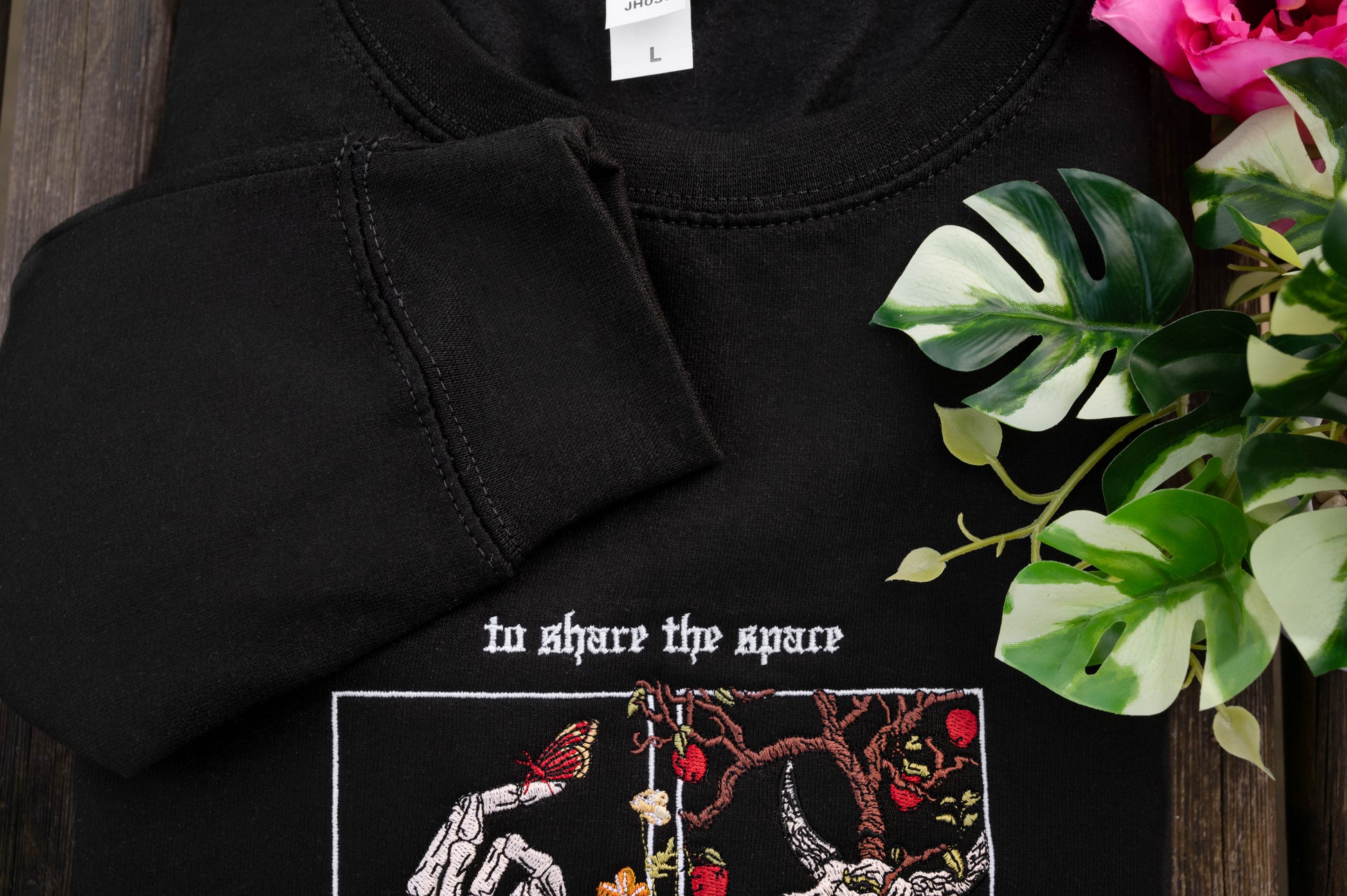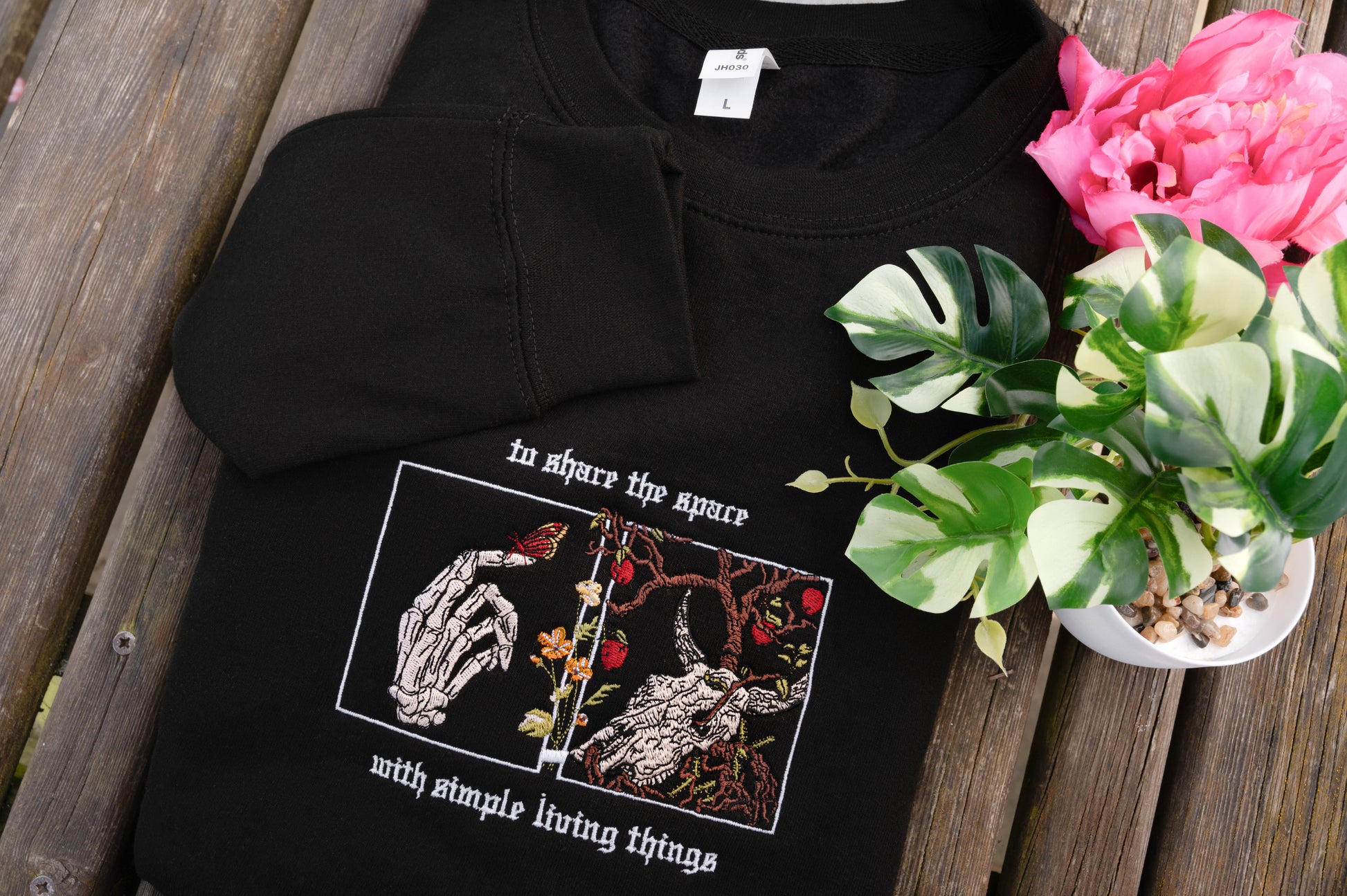 Very few things feel as Hozier-y as the combination of skeletons and blossoms - the very same cycle of life and death described on First Time, which represents limbo. Embroidered with the lyric 'to share the space with simple living things', this design captures both the beginning and the end, the growth and the decline, in true Hozier fashion.