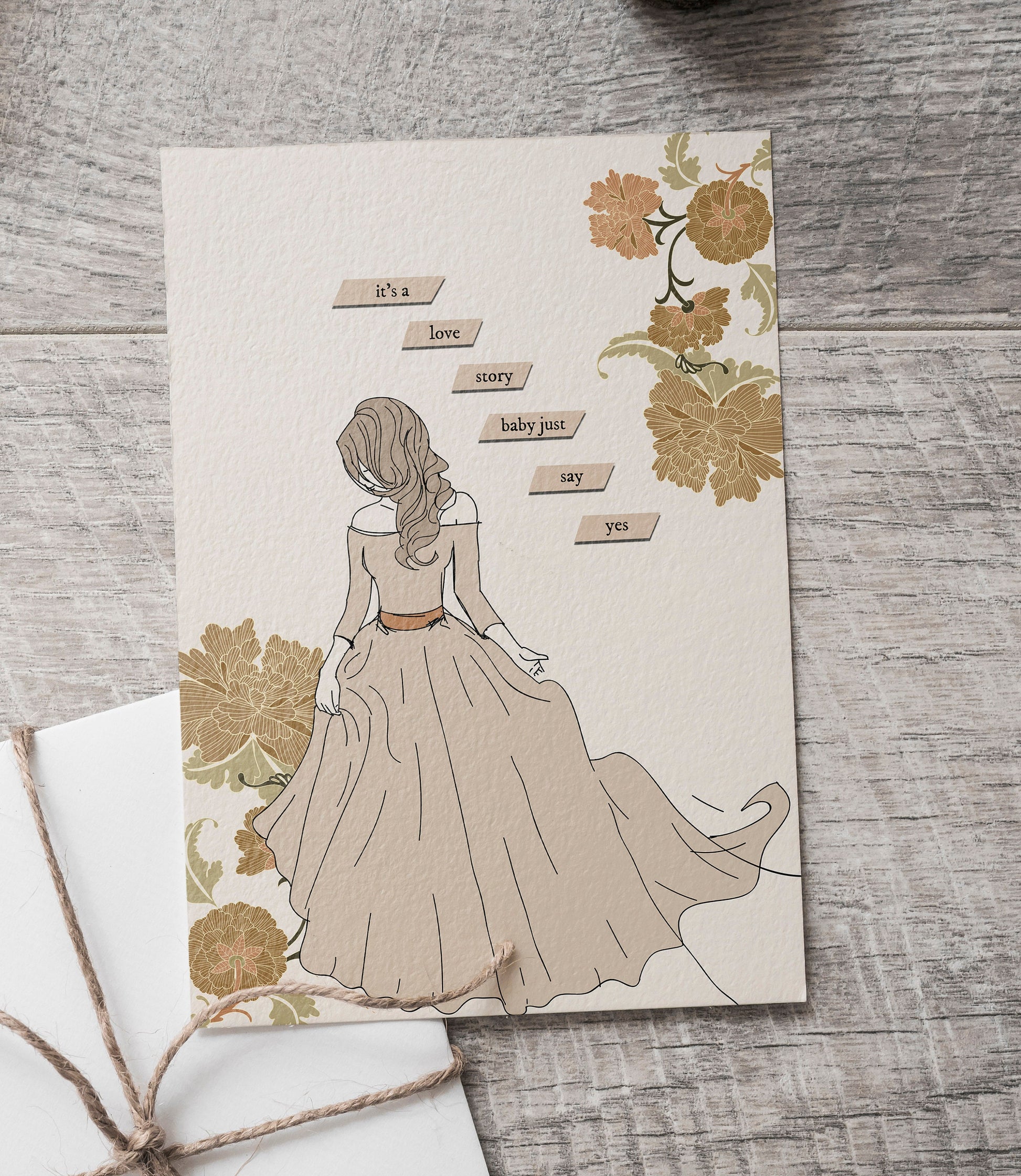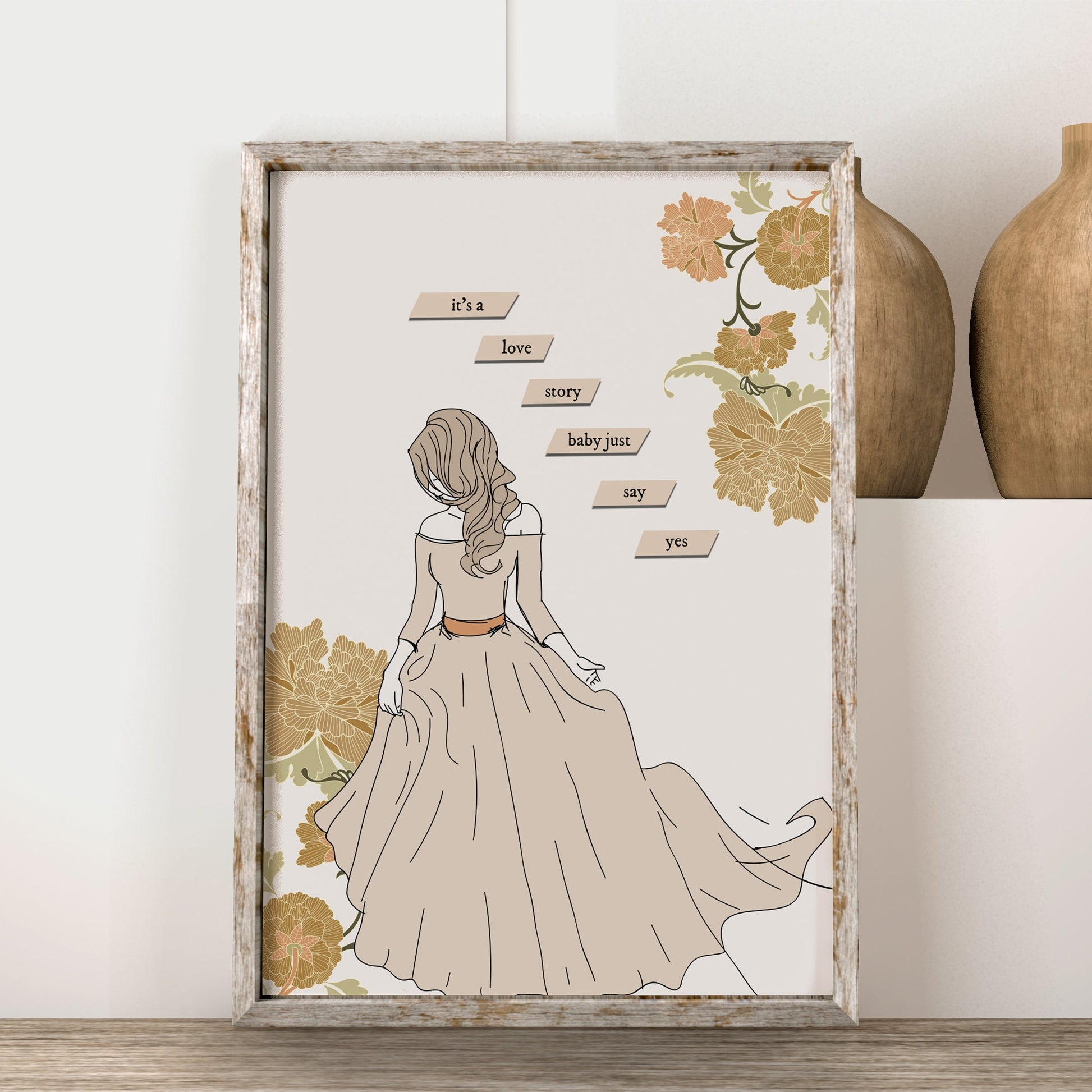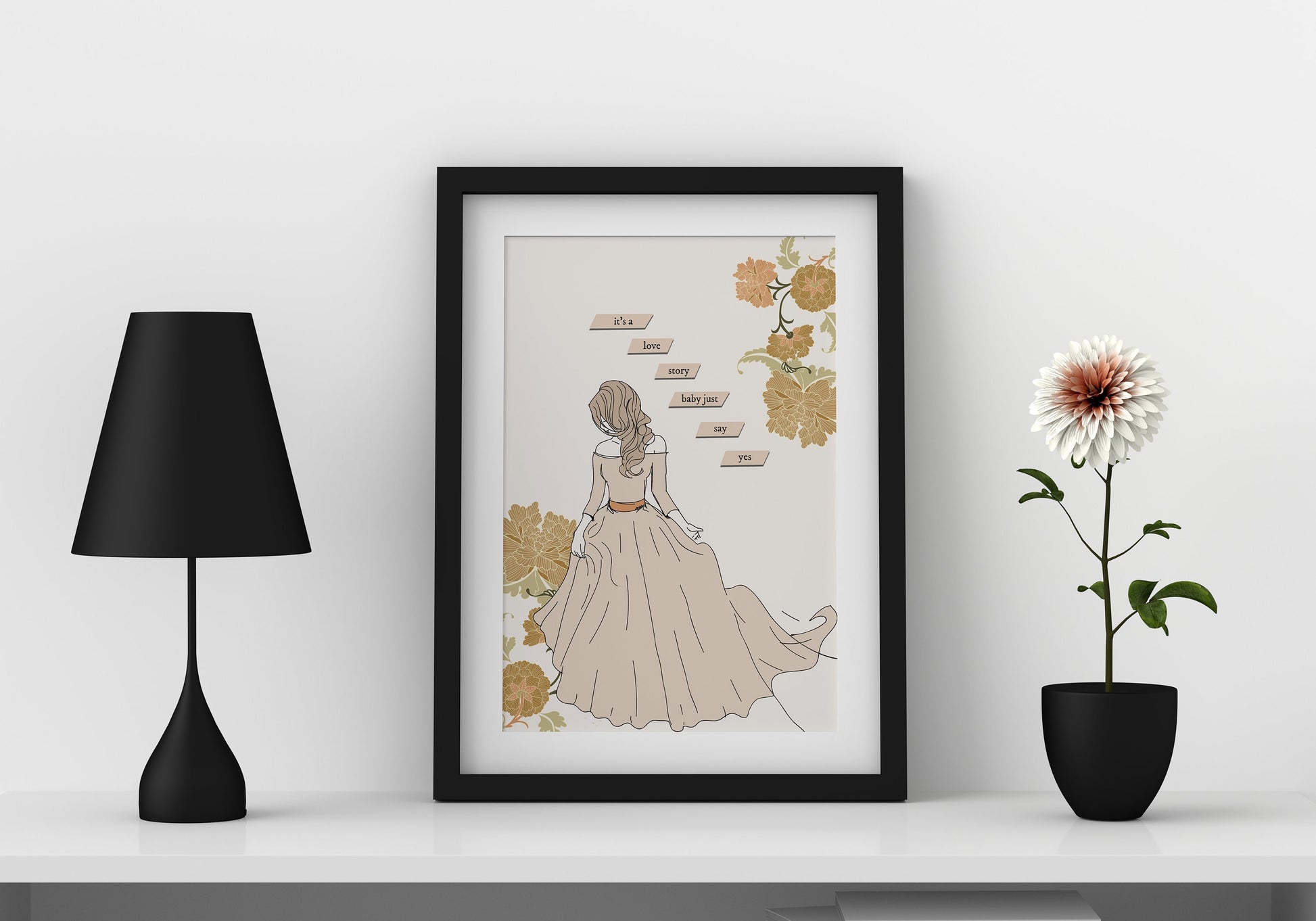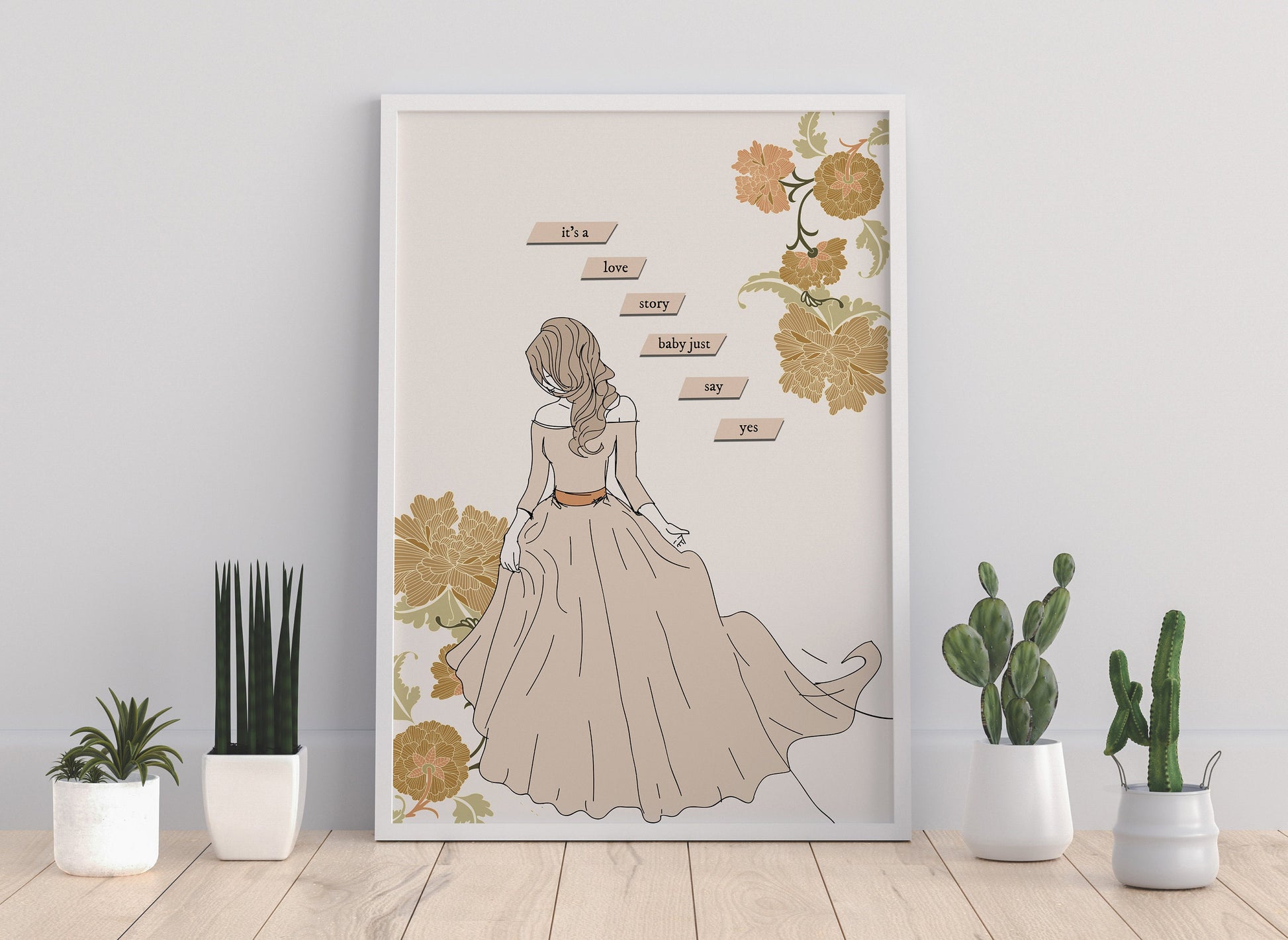 This print is inspired by Taylor Swift's recent re-recording, 'Fearless (Taylor's Version)', featuring a iconic lyric from 'Love Story (Taylor's Version) - 'it's a love story, baby just say yes'. The perfect gift for the special swiftie in your life, or a gift to a loved one, to show them just how grateful you are to have your own invisible string tying you to them.