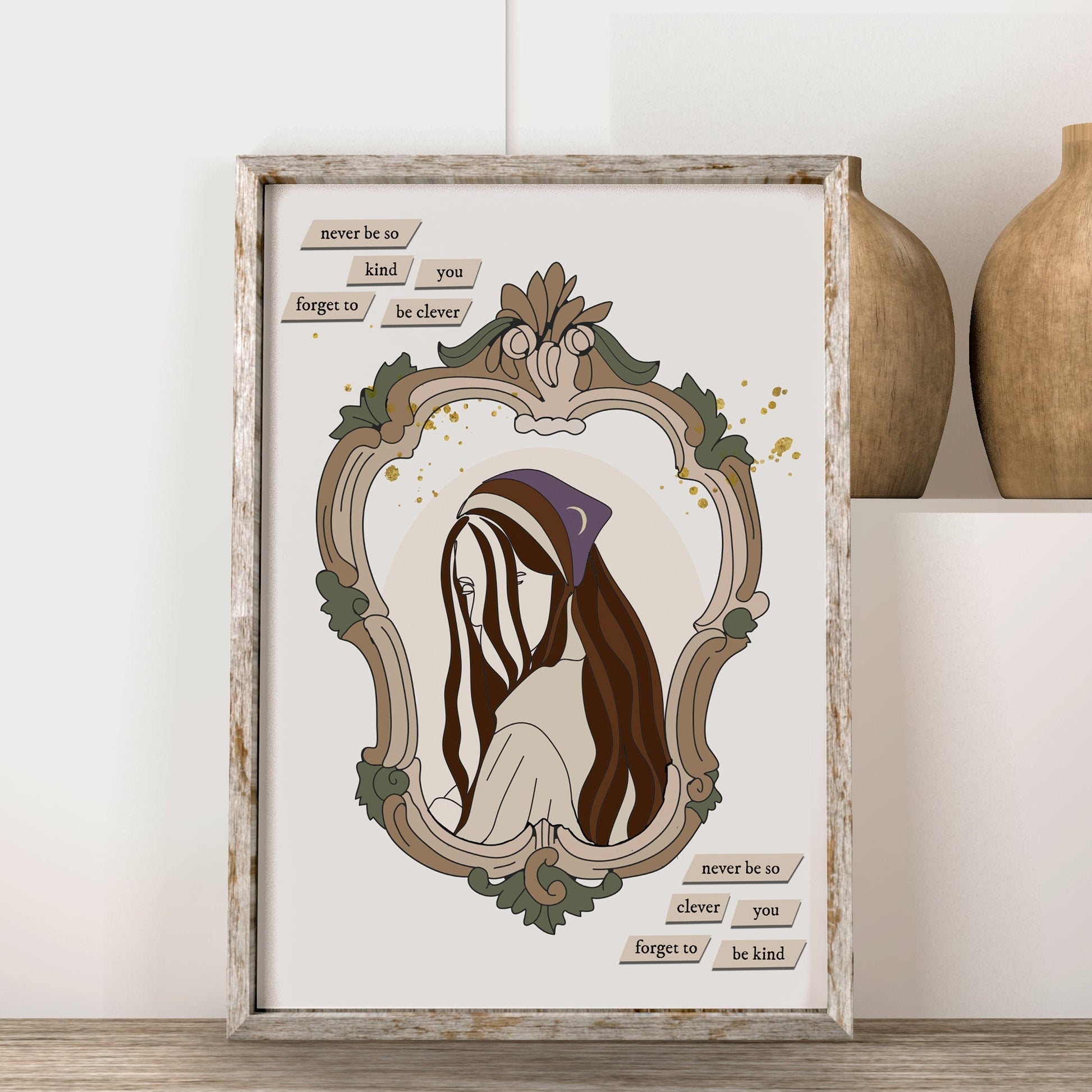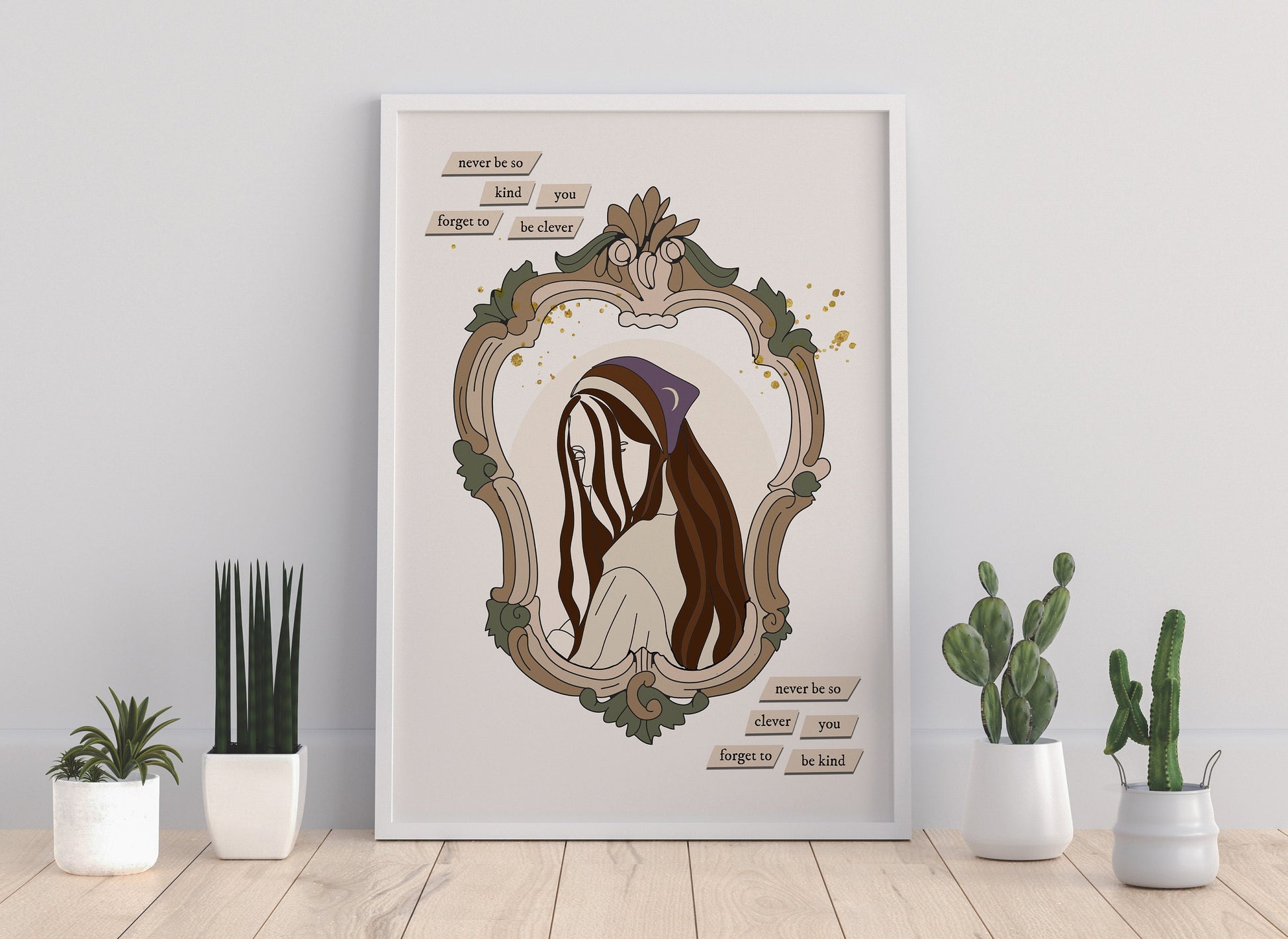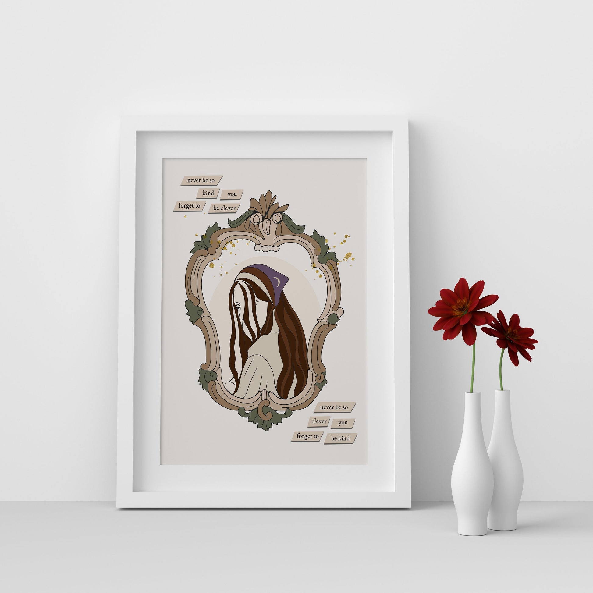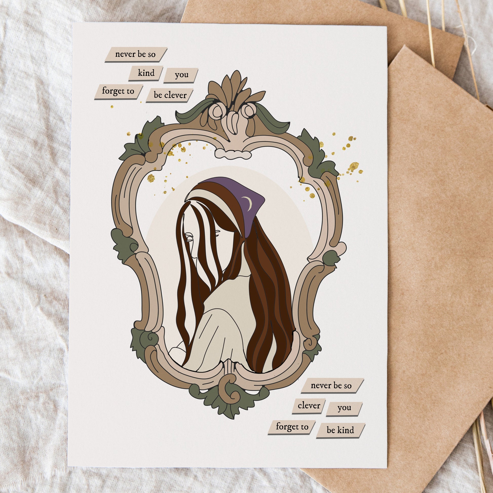 This print is inspired by Taylor Swift's recent studio album, 'evermore', featuring a lyric from 'marjorie' - 'never be so kind, you forget to be clever / never be so clever, you forget to be kind'. The perfect gift for the special swiftie in your life or a loved one you miss!