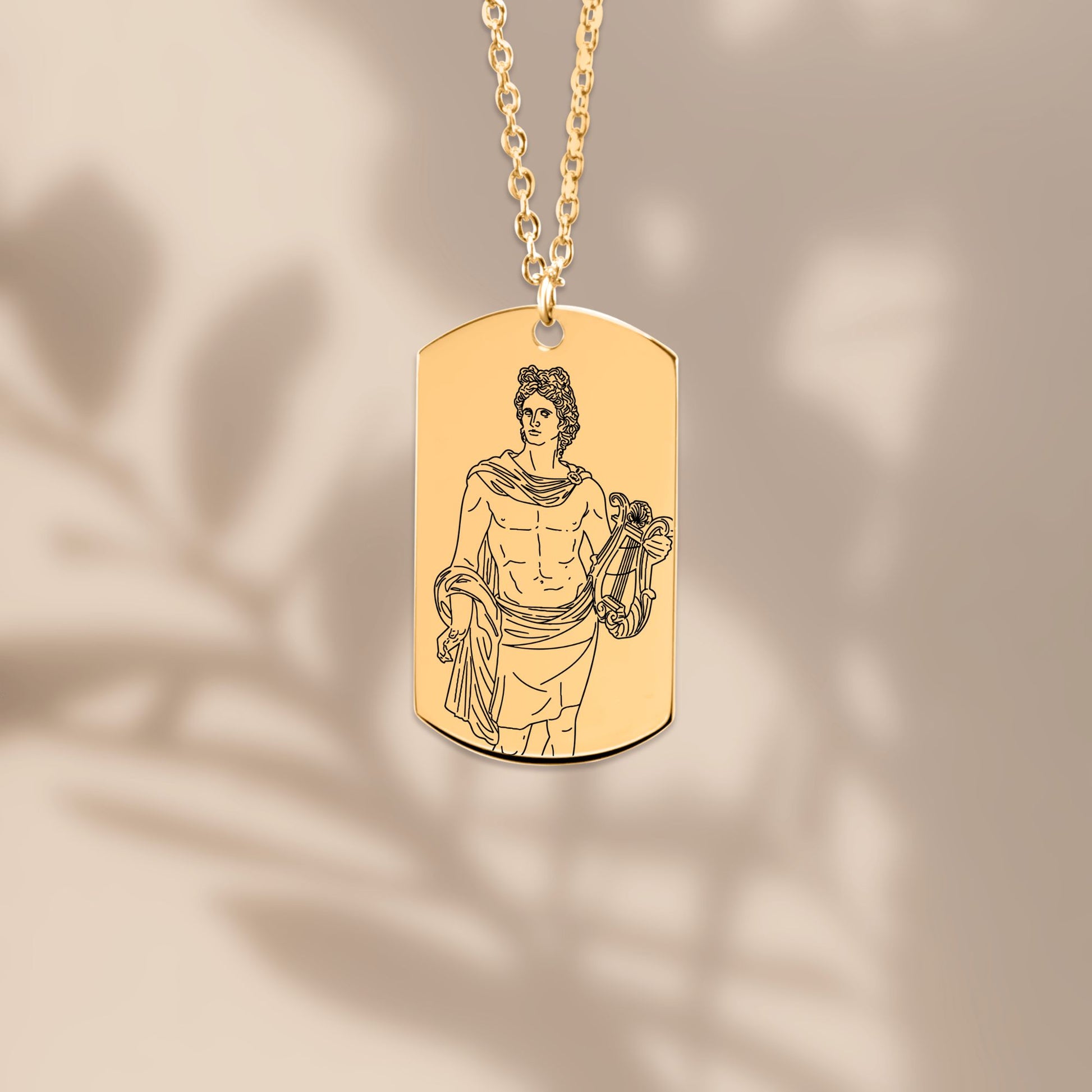 On the front: Apollo, god of the sun, prophecy, music, and poetry, holding his sacred lyre. On the back: a sun engraving - a symbol of clarity, light, and divine self-expression.