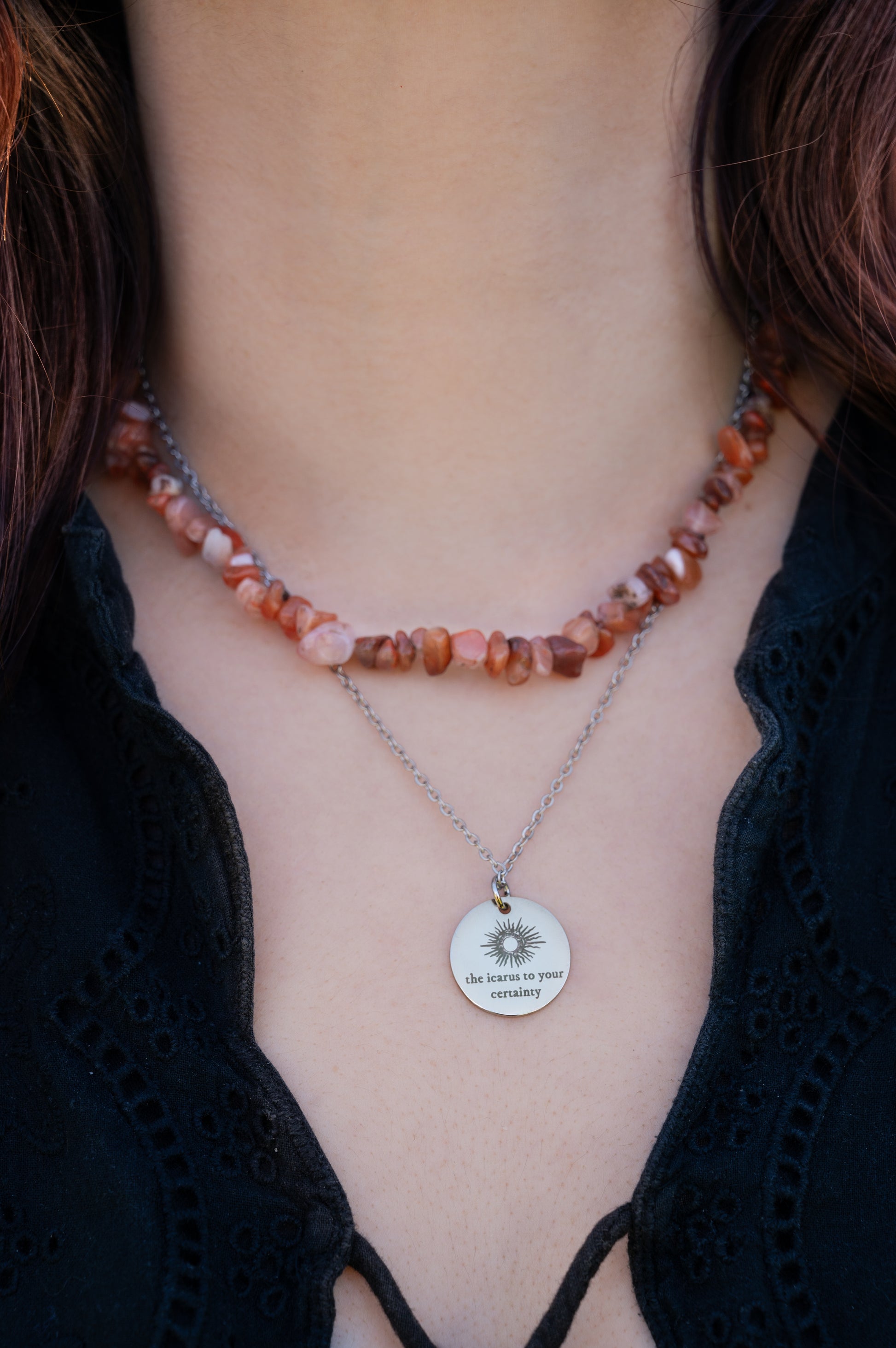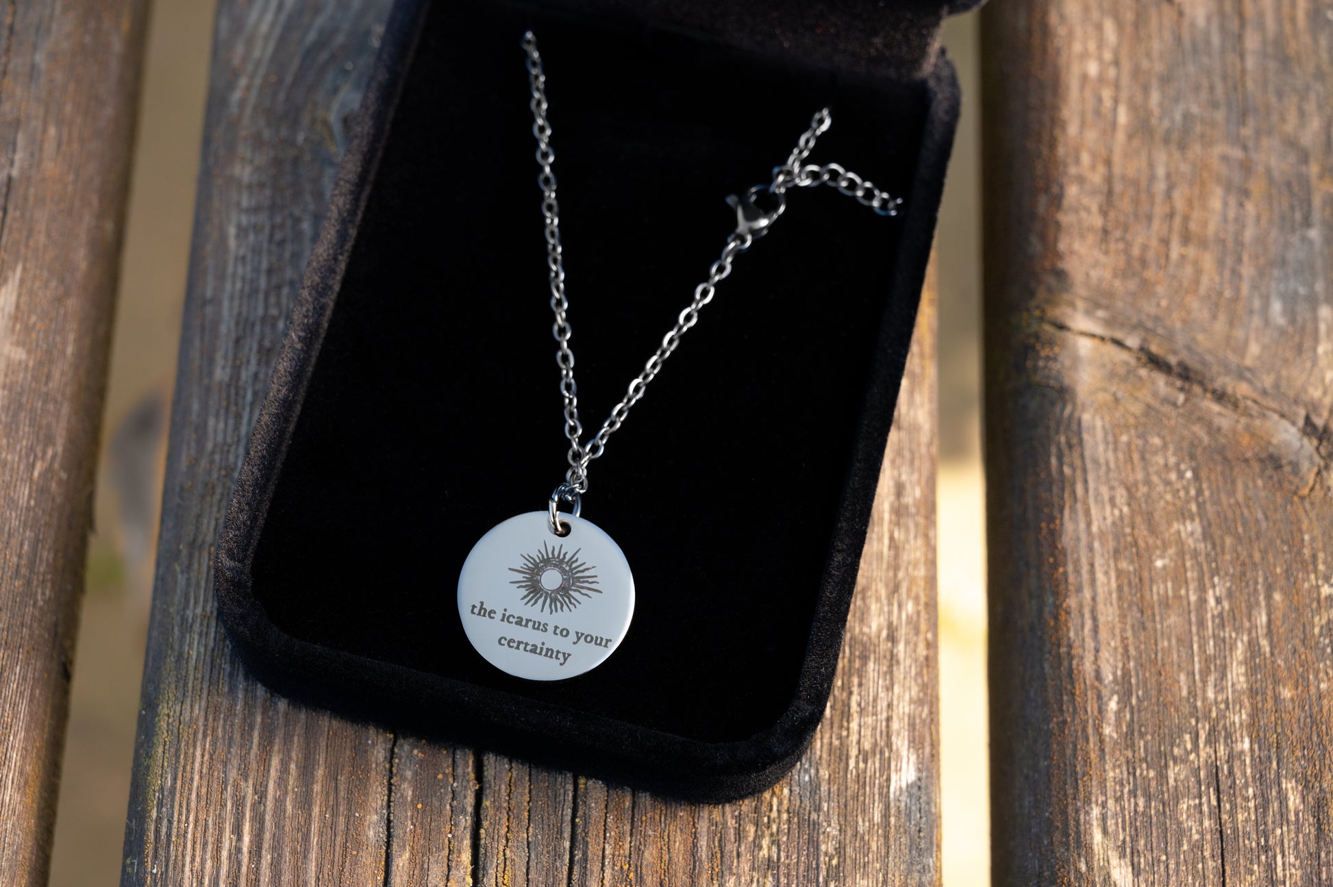 Inspired by Sunlight by Hozier, this necklace captures the tragic beauty of Icarus’ fall and the devotion expressed in the lyric: “I’d gladly be the Icarus to your certainty.”