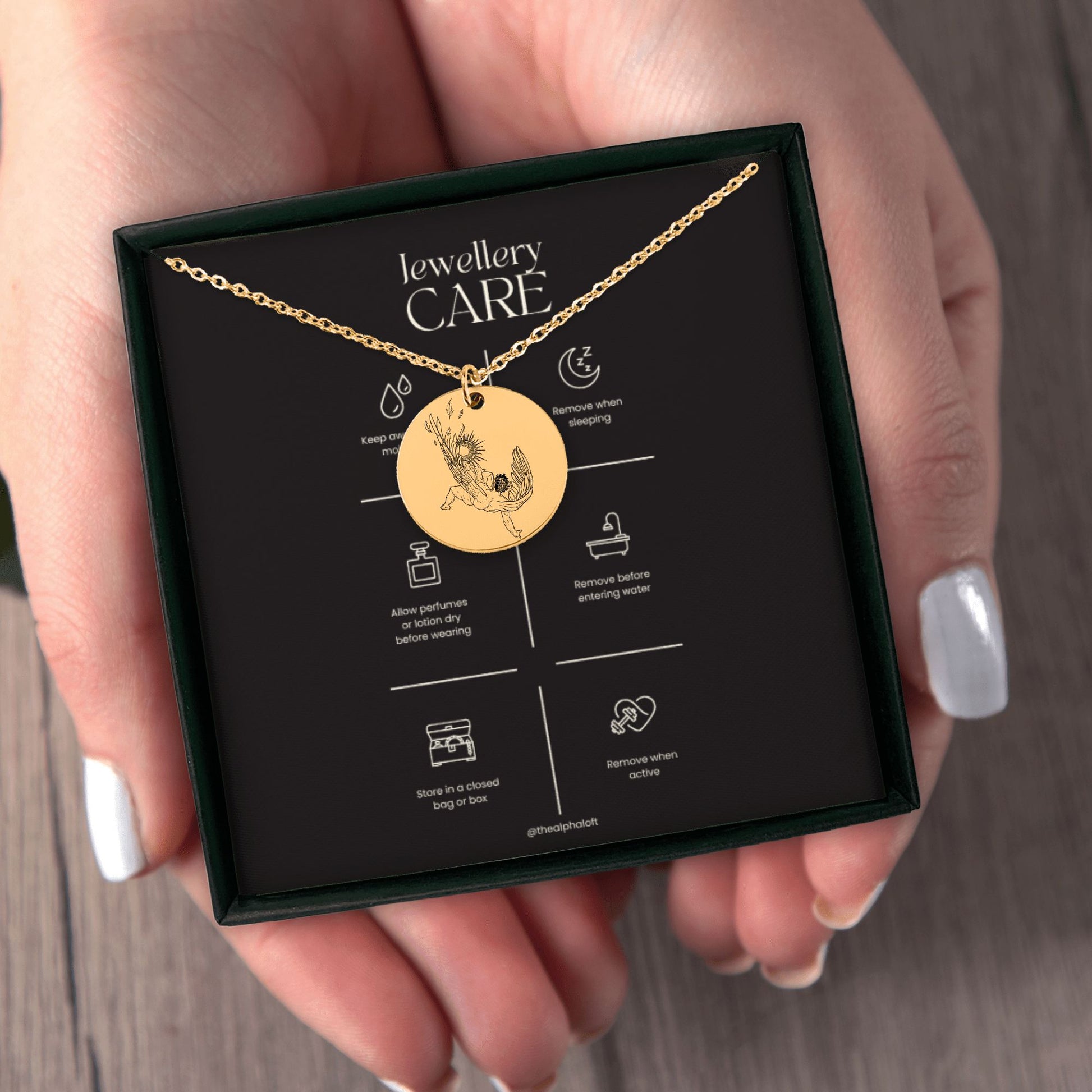 Each piece is made with care using high-quality, tarnish-resistant materials, but to keep your necklace looking its best, I recommend removing it before showering or swimming. Think of it like wearable altar magic - a little care goes a long way.