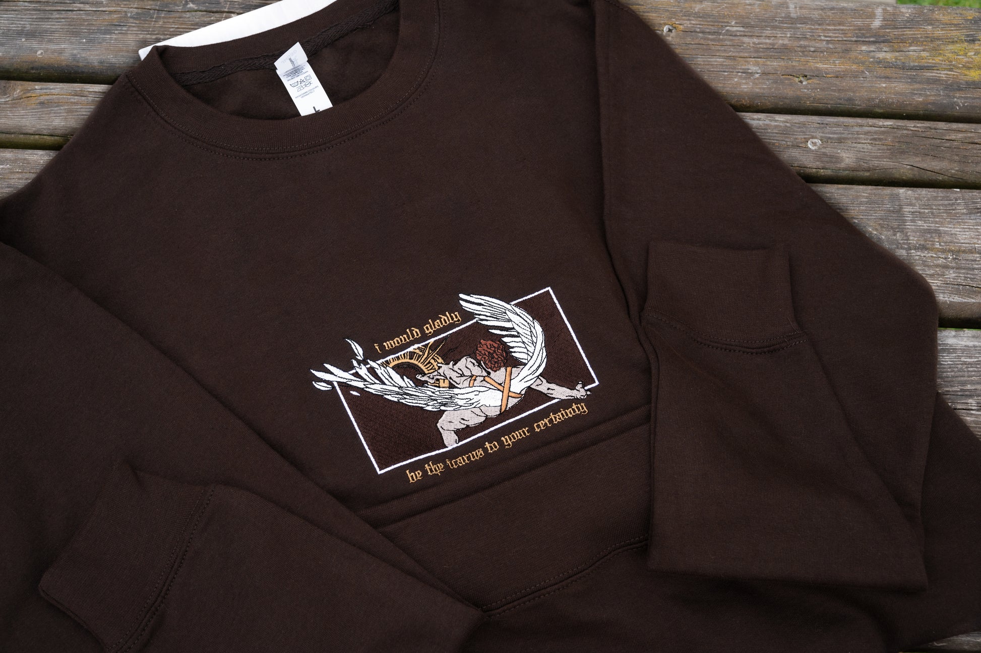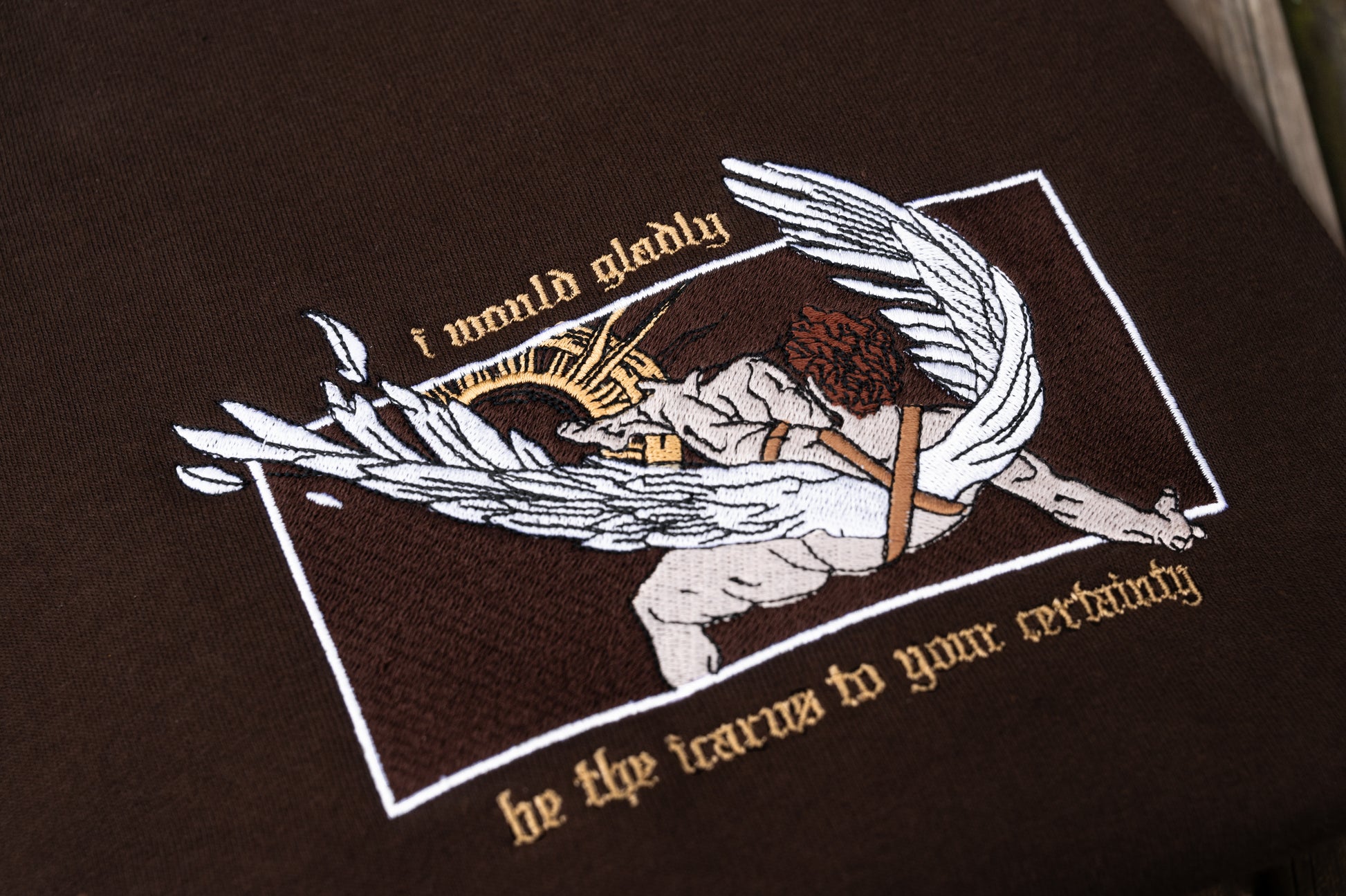 Hozier x Greek mythology is forever a match made in heaven, and this time, it's the fan-favourite Sunlight. Embroidered with an illustration of Icarus reaching for the sun and the lyric "I would gladly be the icarus to your certainty", there's no greater expression of unconditional love.