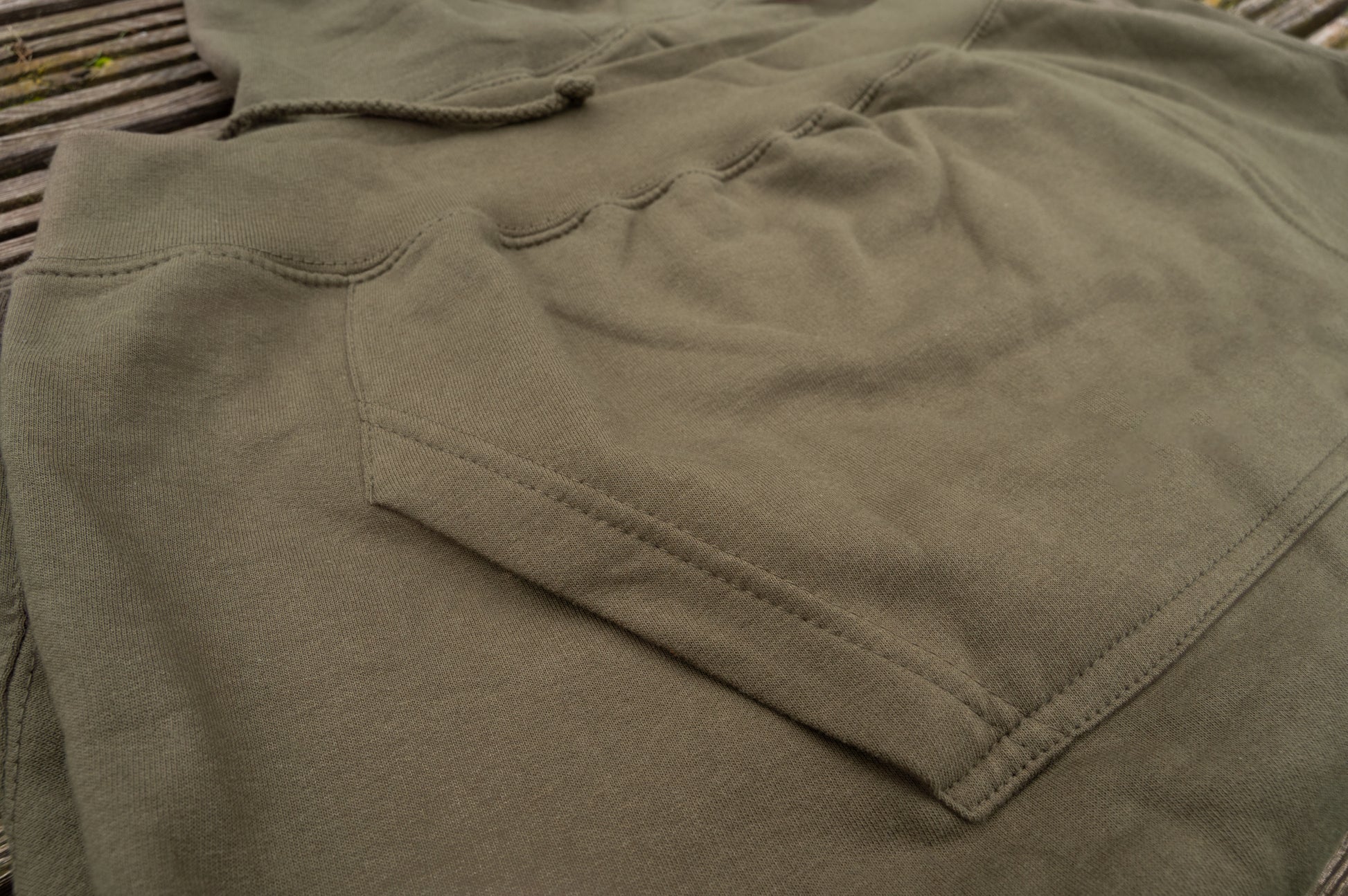 1x1 rib cuffs, waistband, and collar. Size up for an oversized fit.