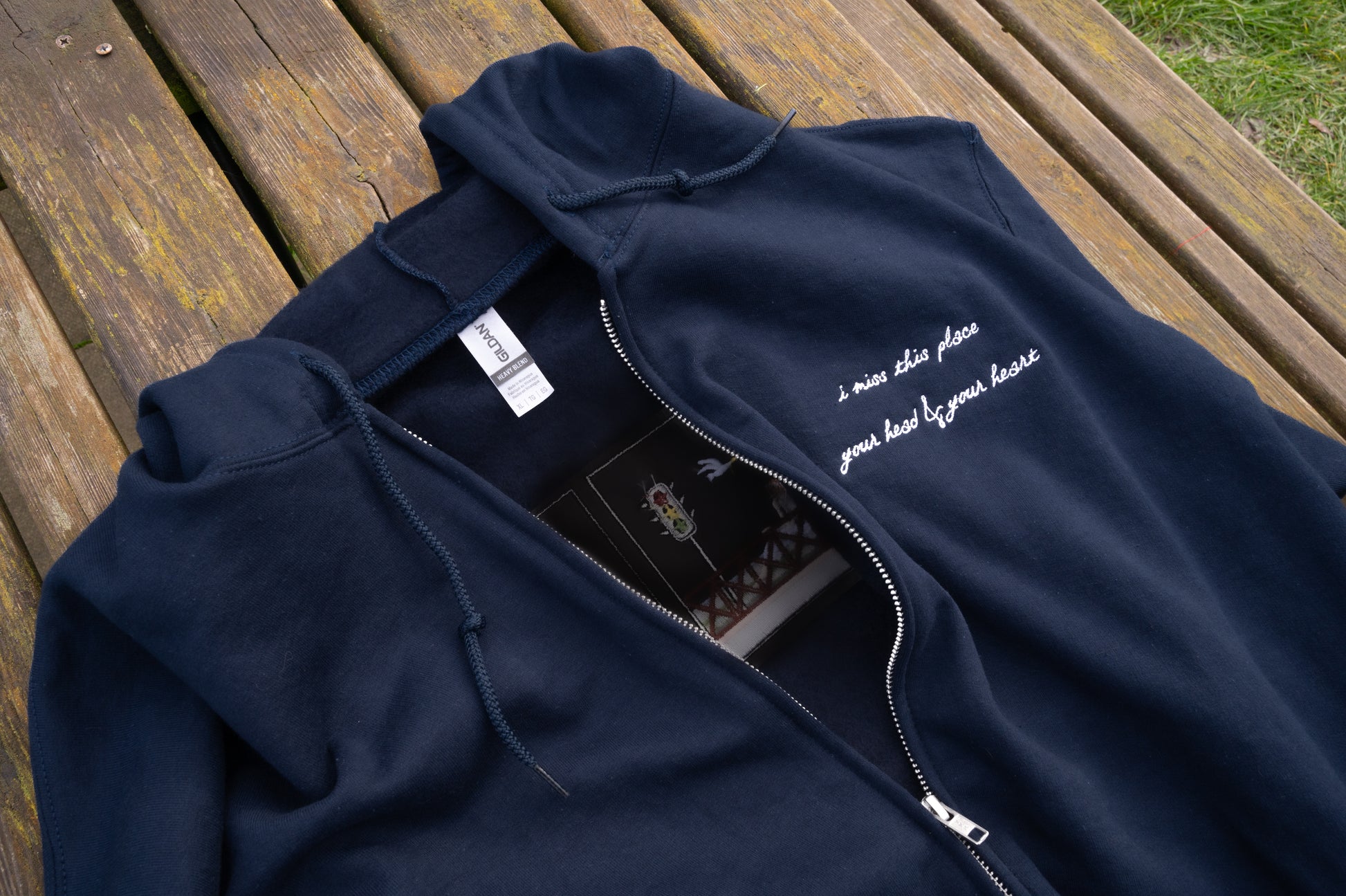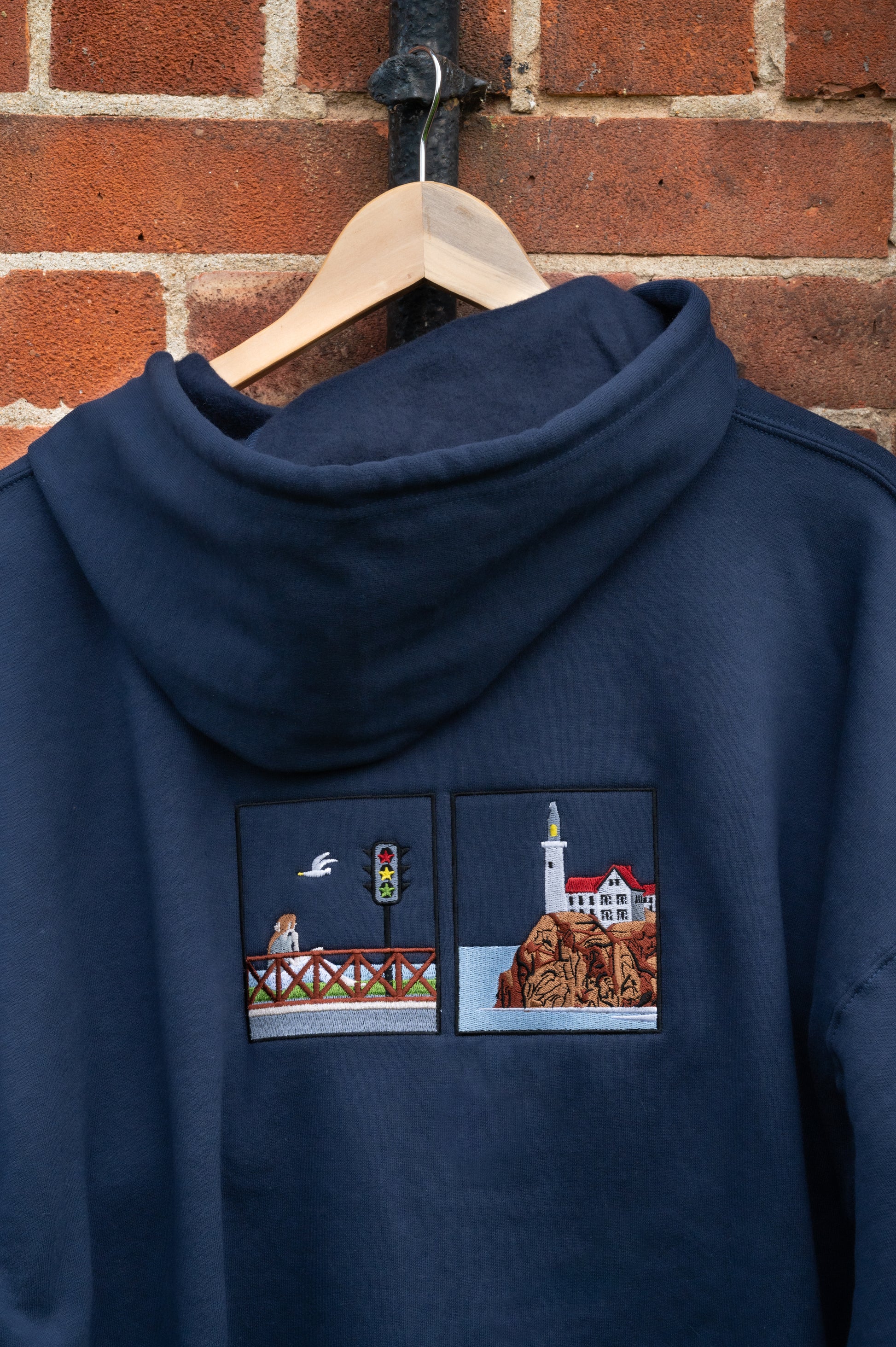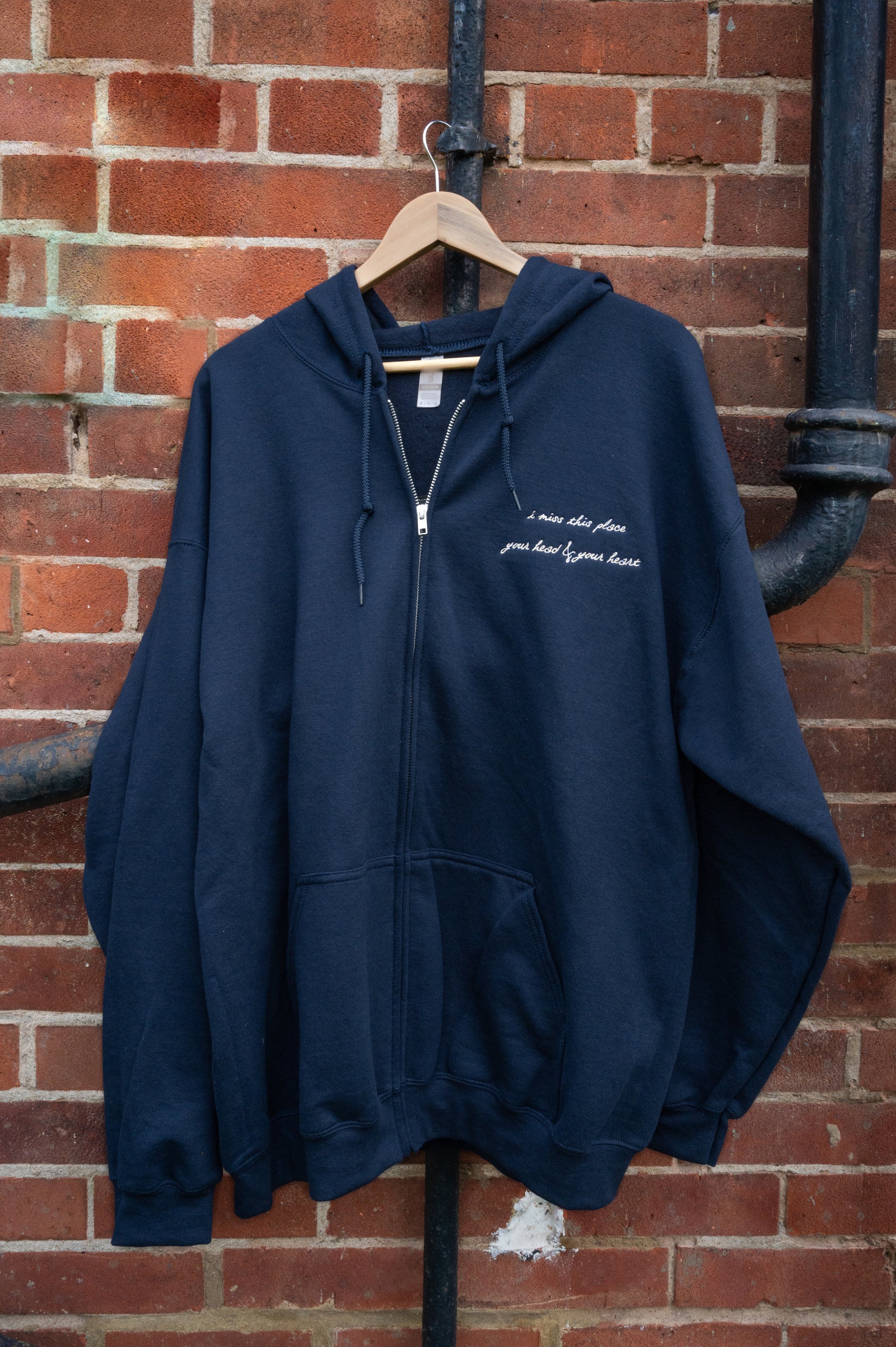 This is a custom embroidered item - please treat it with care. I recommend to wash inside-out on 30 degrees cycles only with similar colours and air dry.