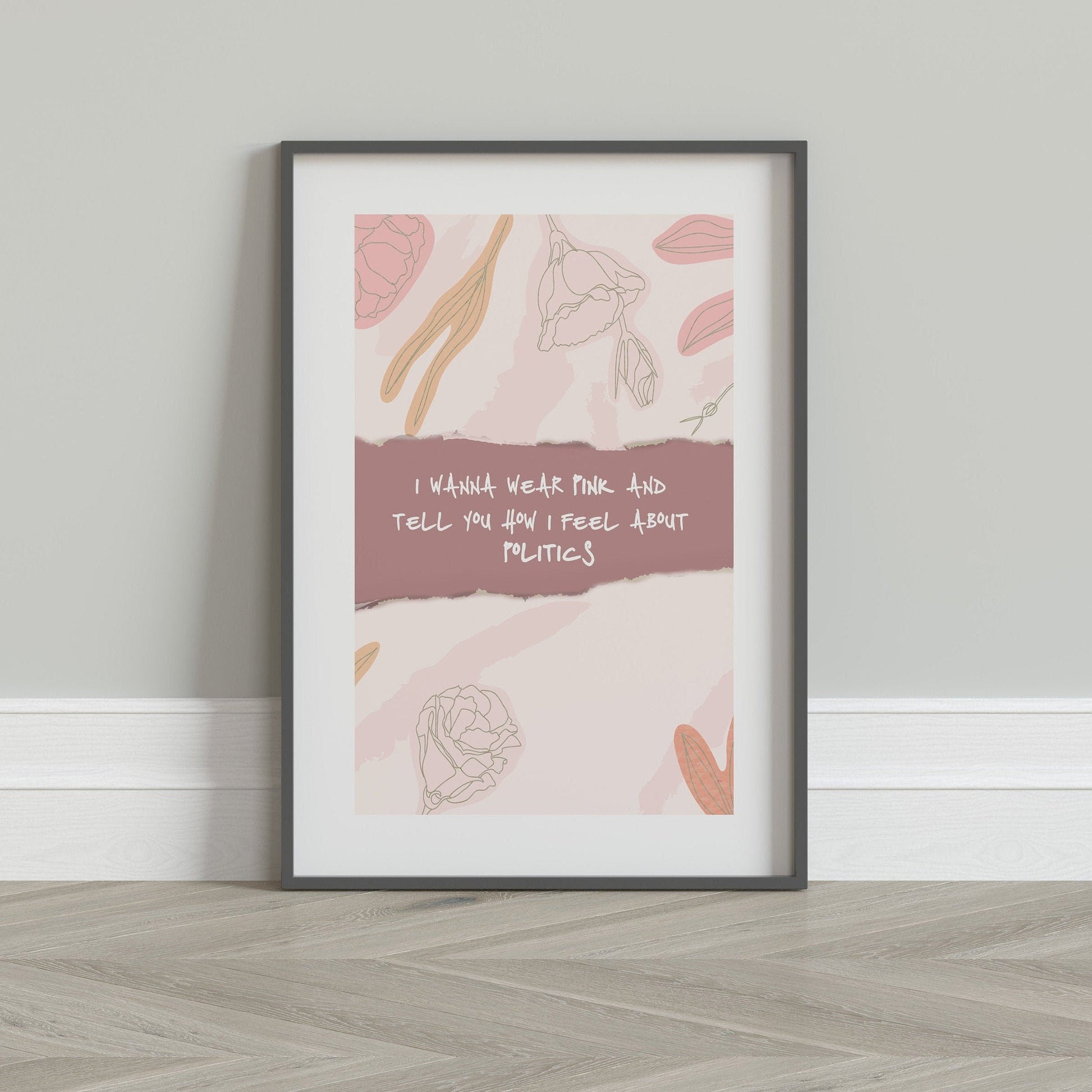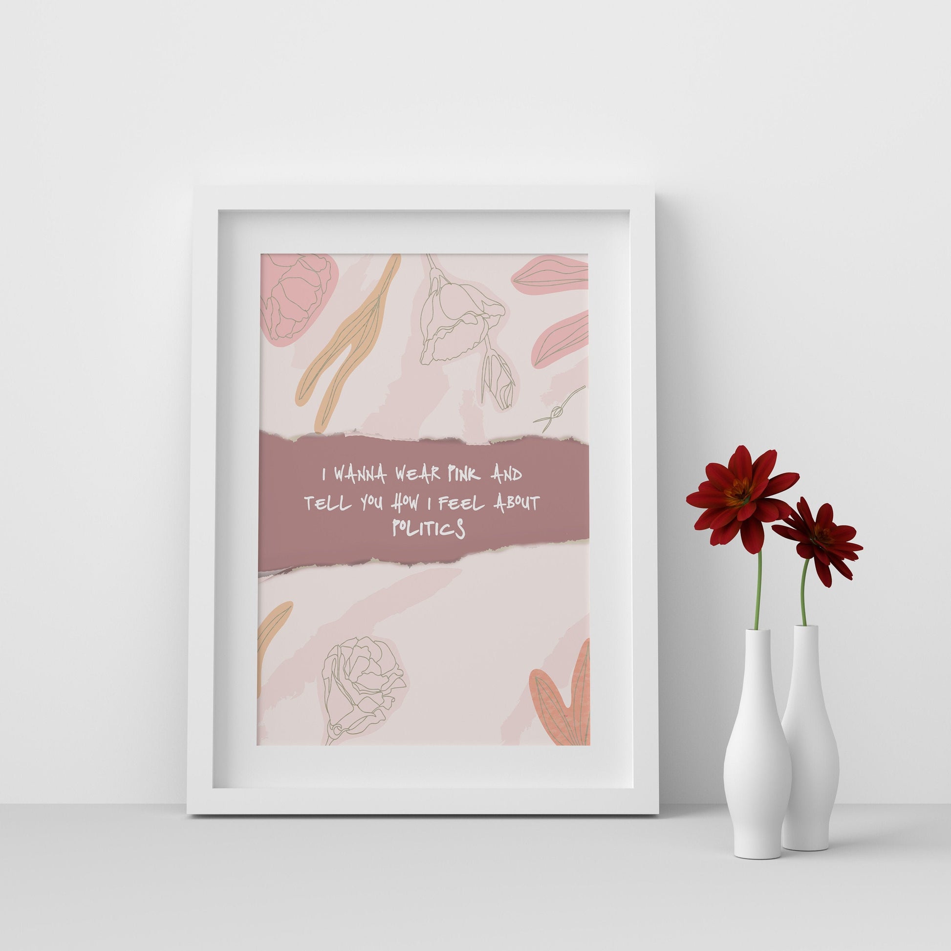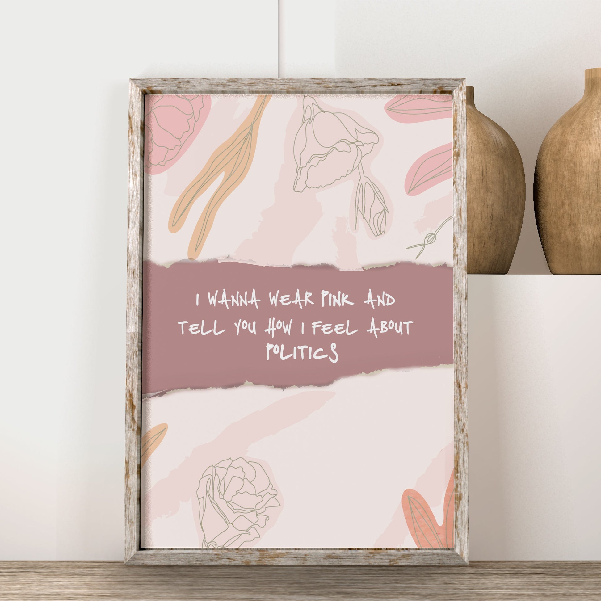 This printable Taylor Swift-inspired print is an original design by me, featuring a quote from 'Miss Americana' - "I wanna wear pink and tell you how I feel about politics", because femininity and politics shouldn't be mutually exclusive. The perfect gift for your activist friends, or the special Swiftie in your life.